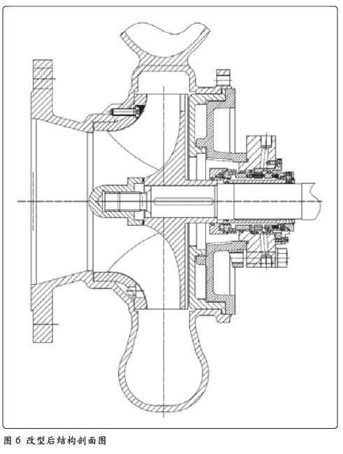 針對以上問題及原因分析,對現(xiàn)泵型結(jié)構(gòu)進(jìn)行改型,改型后結(jié)構(gòu)剖面圖如圖6 所示,具體分析如下: