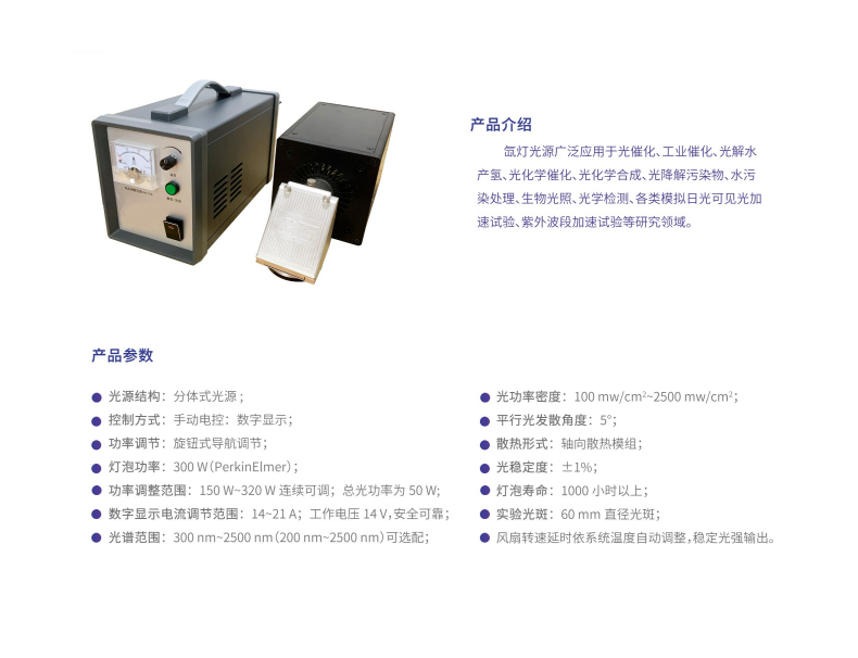 氙燈光源廣泛應(yīng)用于光催化、工業(yè)催化、光解水產(chǎn)氫、光化學(xué)催化、光化學(xué)合成、光降解污染物、水污染處理、生物光照、光學(xué)檢測、各類模擬日光可見光加速試驗(yàn)、紫外波段加速試購等研究領(lǐng)域。