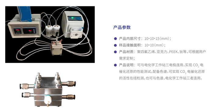 產(chǎn)品說明:可與電化學(xué)工作站三電極連用,實(shí)現(xiàn)CO?電催化還原的性能測試。配備色譜,可實(shí)現(xiàn)CO?電催化還原的活性在線檢測。也可與色譜,電化學(xué)工作站三者連用。
