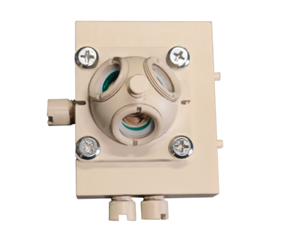 3、反應(yīng)池腔帽有三個窗口,其中兩個為紅外窗口,另一個為石英窗口,用于引入外部光源(光催化激發(fā)光源)或作為觀察窗口使用;