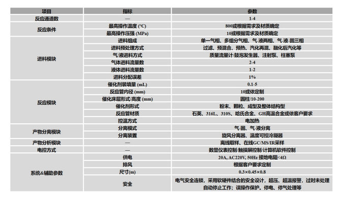 合肥原位(桌面)微型固定床反應(yīng)器適用于實(shí)驗(yàn)室工作臺(tái)面,具有體積小、結(jié)構(gòu)緊湊、模塊化設(shè)計(jì)便于組裝改進(jìn)等特點(diǎn)??筛鶕?jù)反應(yīng)體系定制反應(yīng)通道、氣液路數(shù)量、分離裝置類型&尺寸以及取樣分析方式,完美契合客戶實(shí)際需求.安全性:電氣安全連鎖,采用軟硬件結(jié)合的安全設(shè)計(jì),超壓、超溫 報(bào)警,過(guò)時(shí)未處理自動(dòng)停止工作;誤操作保護(hù);停電、停氣處理等。