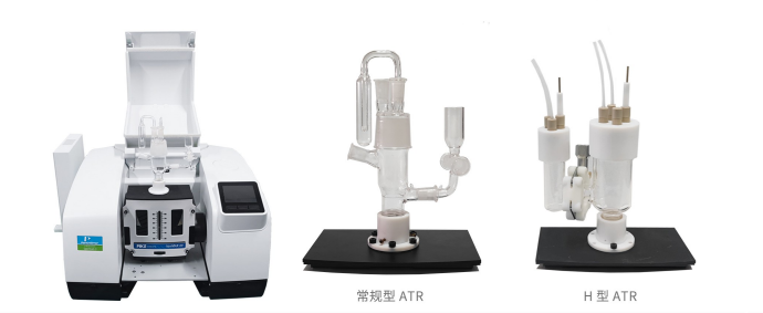 原位紅外電化學ATR可以獲得電極表面吸附物種的取向、排列、覆蓋等狀態(tài)信息,是從分子水平研究電極過程的一種有效手段,其中衰減全反射模式的表面增強光譜,由于表面選律簡單、表面信號強、傳質(zhì)容易以及受本體溶液干擾小的優(yōu),特別適合實時檢測電極表面動態(tài)過程。該原位反應系統(tǒng)引入了三電極和氣體接口,可以在施加外偏壓的條件下,向溶液中通入CO2、N2等反應氣體,實現(xiàn)光(電)催化原位紅外光譜表征。在此基礎上,通過在單晶硅表面蒸鍍(或濺射等)金層,引入表面等離子共振波,實現(xiàn)表面增強效應,增強該原位表征的信號。