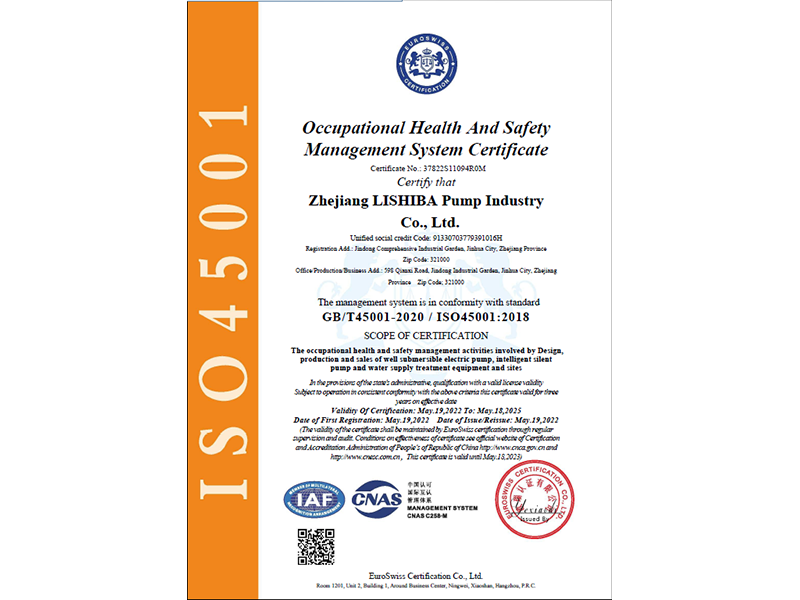ISO145001:2018認(rèn)證證書(職業(yè)健康安全管理體系)