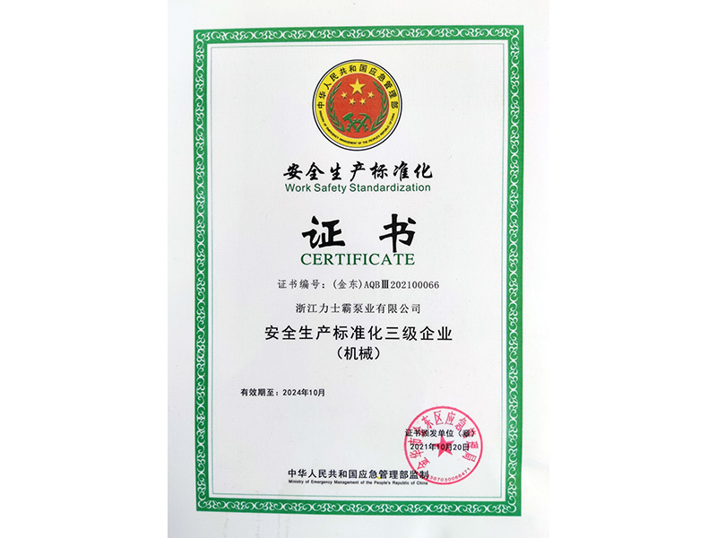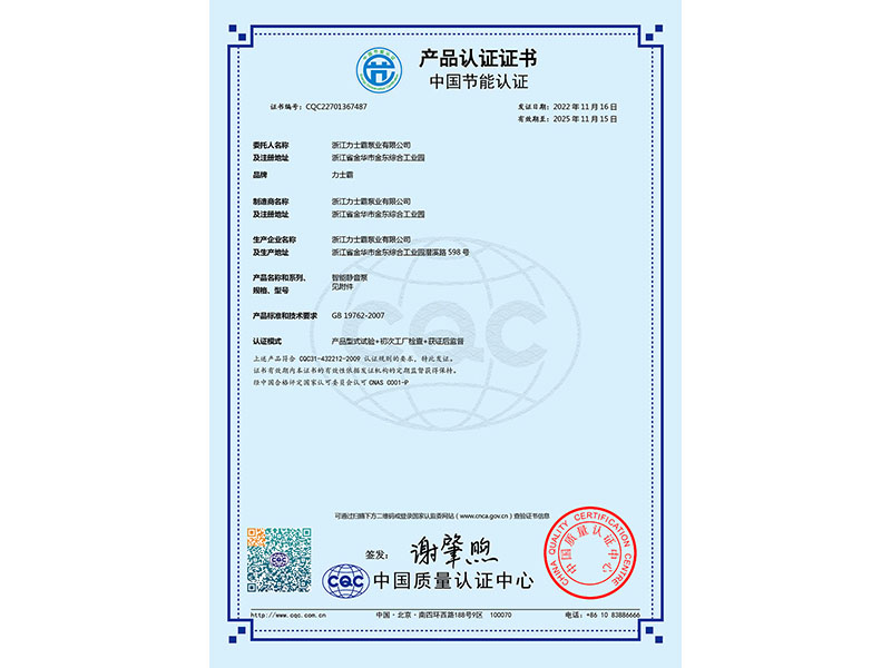 浙江力士霸泵業(yè)有限公司(浙江制造認(rèn)證正書證書編號(hào):CZJM2