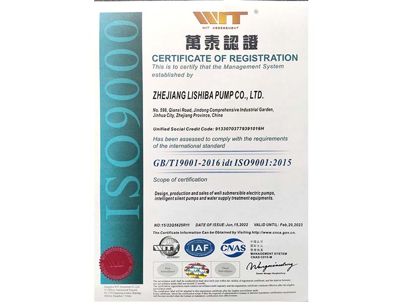 ISO9001:2015認(rèn)證證書(質(zhì)量管理體系)