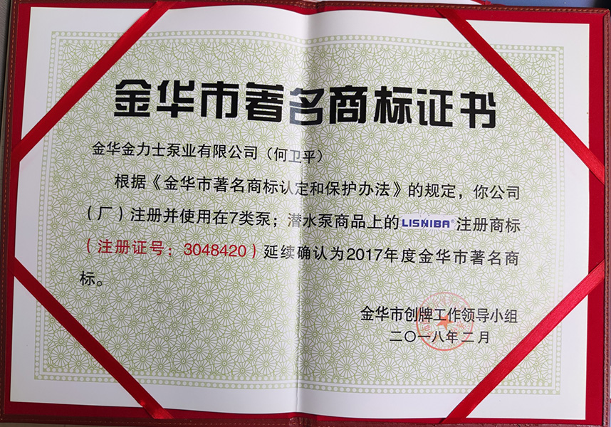 金華市著名商標(biāo)(LISHIBA商標(biāo))